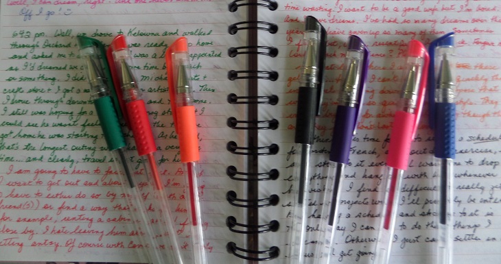 I find writing in my journal with colourful pens to be fun and inspiring! Except that sometimes I tire of the same old colours. And some of the pens don’t glide as nicely over the paper as I wish they would. And some of them are super pale shades and I have to press hard and even then the writing isn’t clear. I keep hoping they’ll run out of ink soon, but it seems the only ones that do so are the ones I like the most.